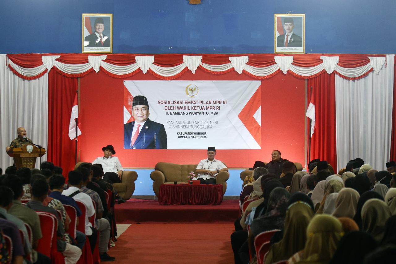 Wonogiri – Majelis Permusyawaratan Rakyat Republik Indonesia (MPR RI) kembali menggelar kegiatan Sosialisasi Empat Pilar MPR RI di Kabupaten Wonogiri, Provinsi Jawa Tengah. Kegiatan ini dilaksanakan pada Sabtu, 7 Maret 2026 pukul 07.00–11.30 WIB di Aula Pertemuan RM Laras Wonogiri dan diikuti oleh para Penyelenggara Pemilu dari Daerah Pemilihan (Dapil) 3 yang meliputi Kecamatan Bulukerto, Kecamatan Puhpelem, dan Kecamatan Kismantoro….